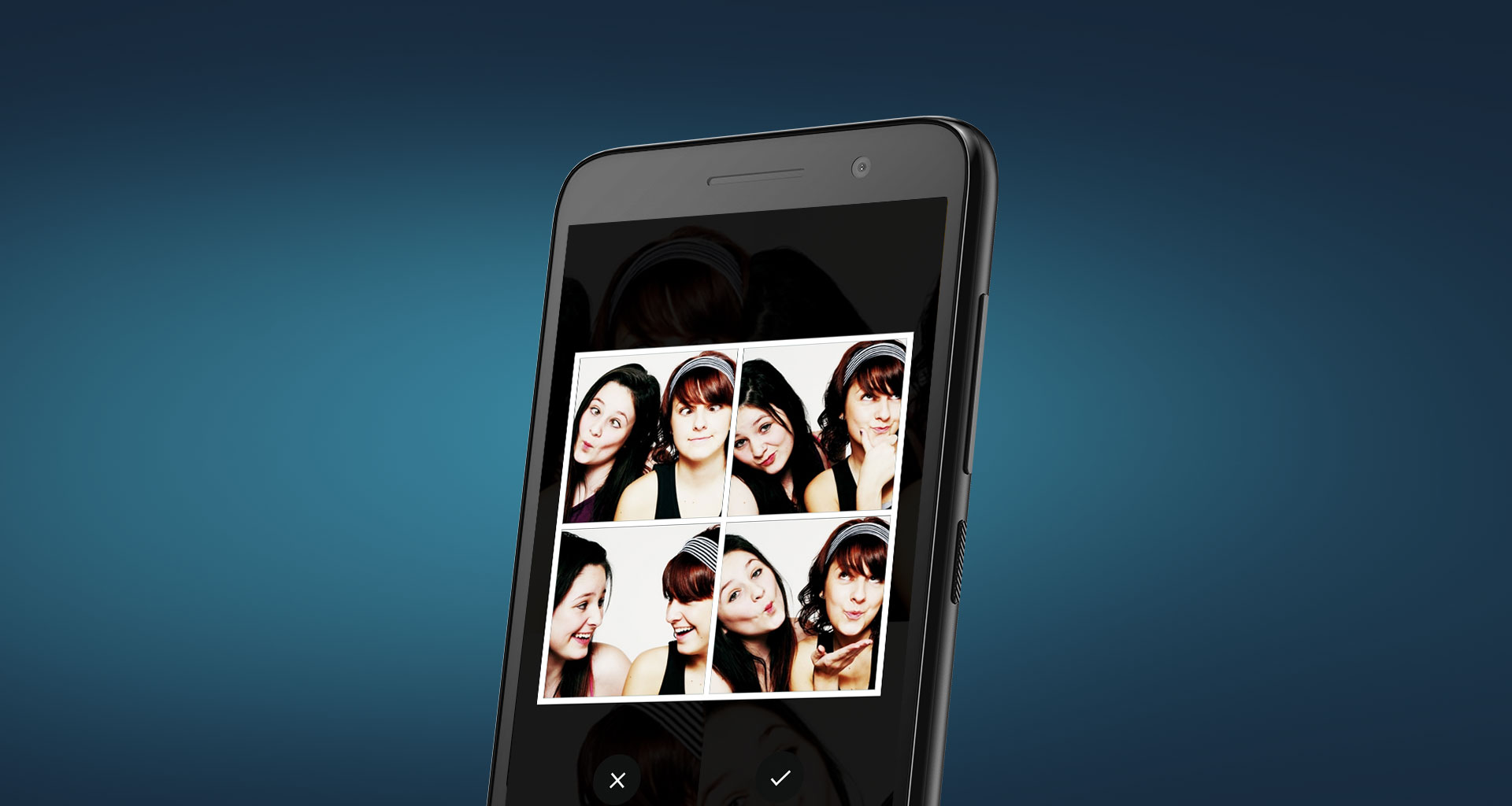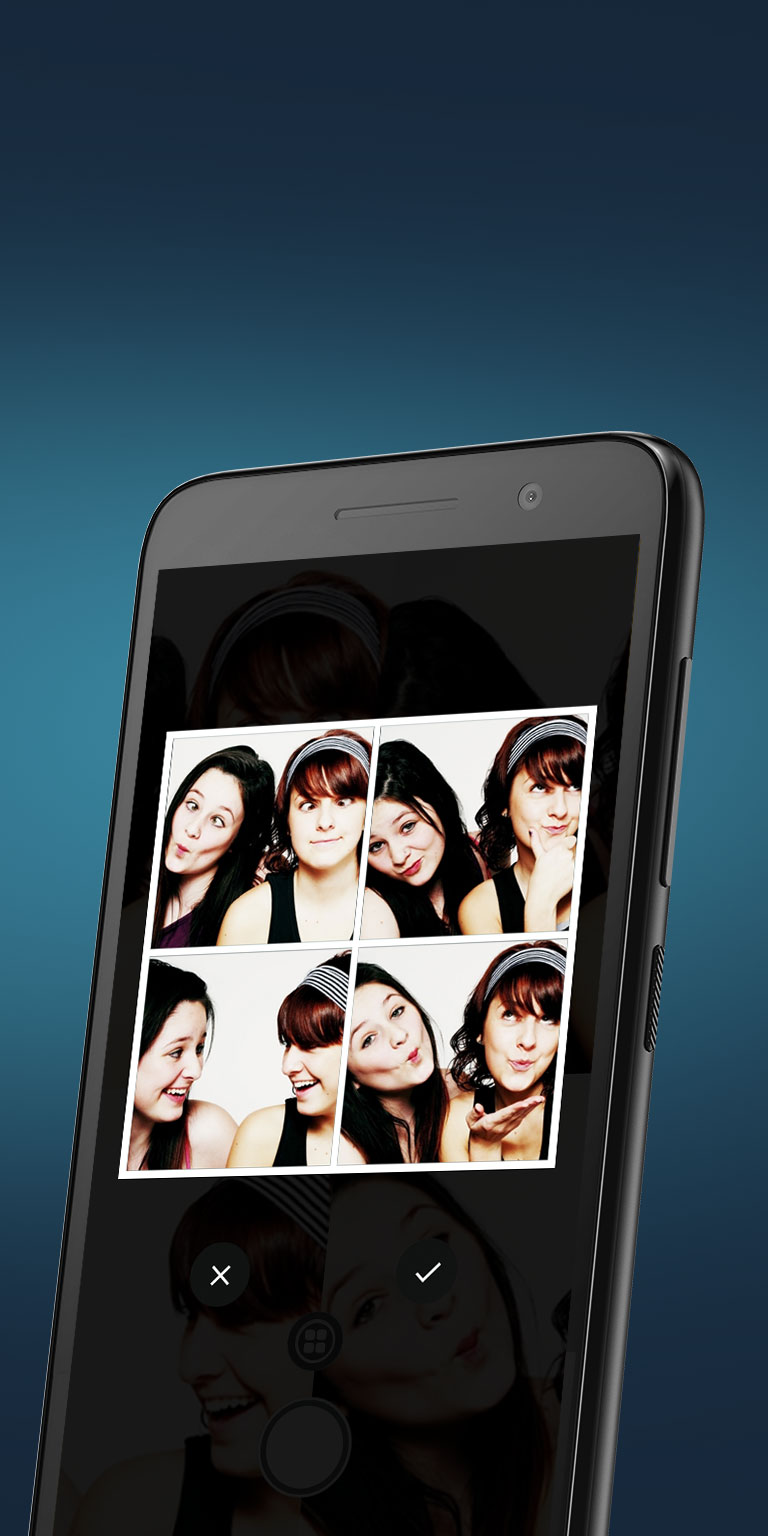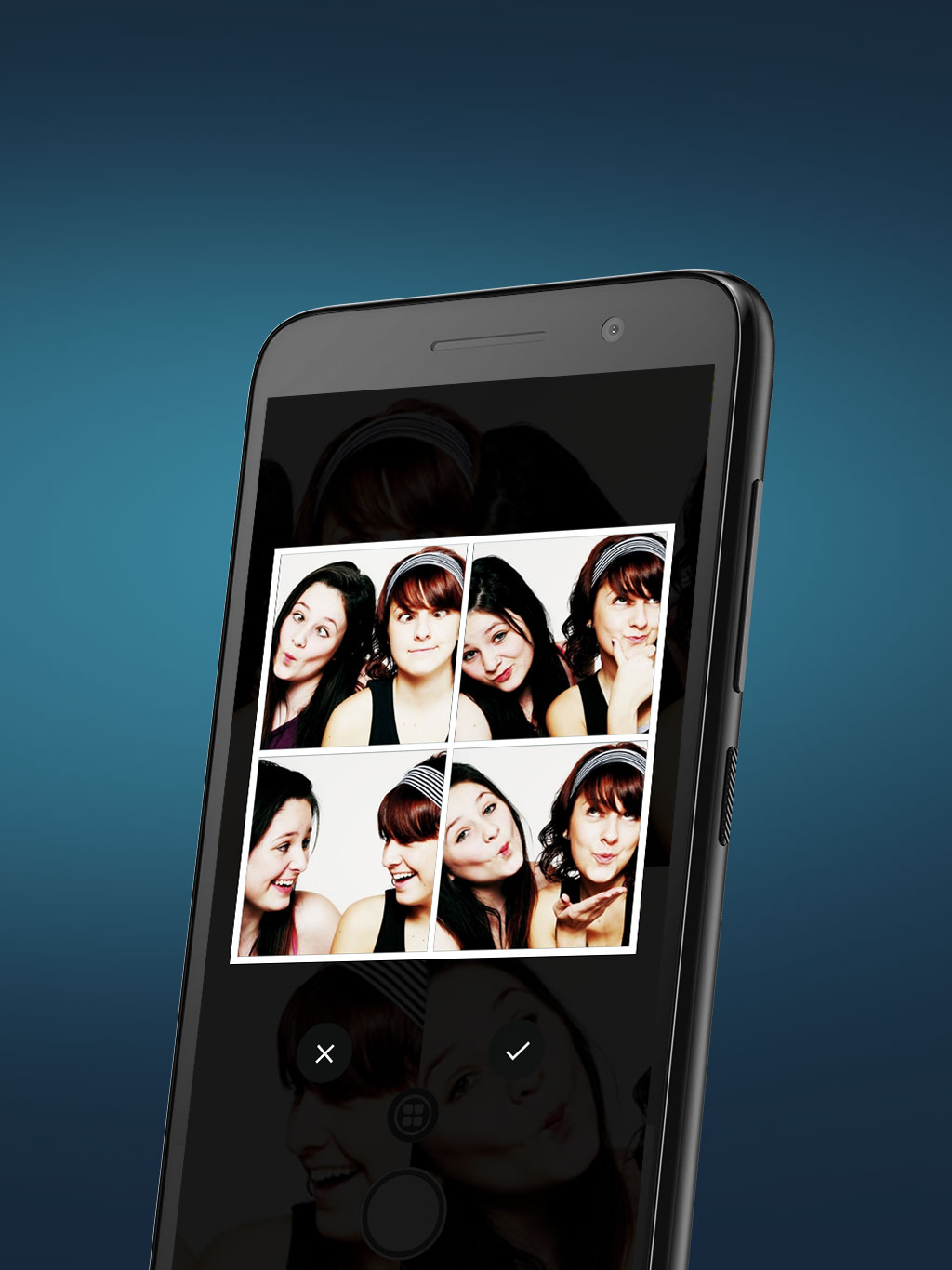 Grab your friends and get close for photo booth-style shots. Strike your best poses in four pictures over three seconds, then share your photo keepsake for all to enjoy.