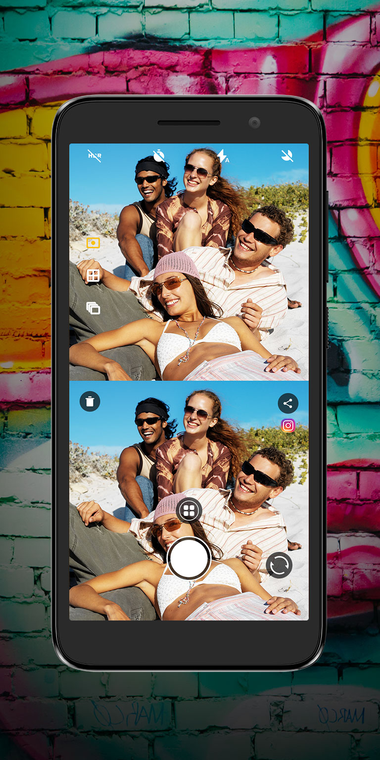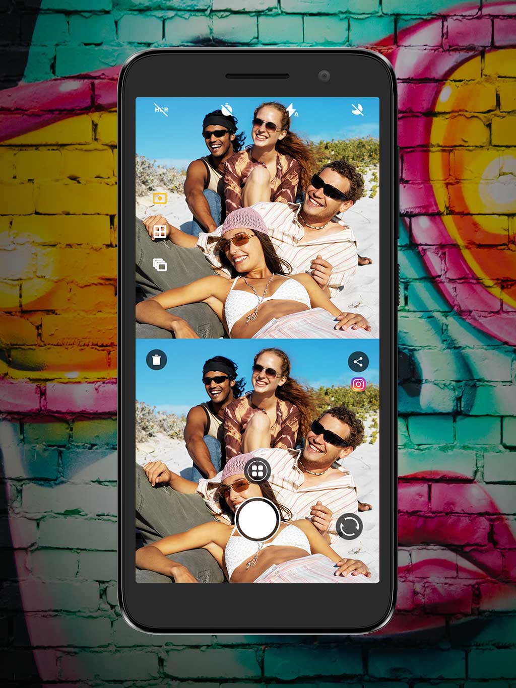 Tell your story with Alcatel 1's Instant Collage. Select from four different collage layouts and use the auto-adjusting viewfinder to frame and shoot every moment. Then share your experience with ease.